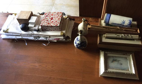インターネットを見てご連絡頂きまして染付の徳利 額 掛軸 着物などなど買い取らせて頂きました。
